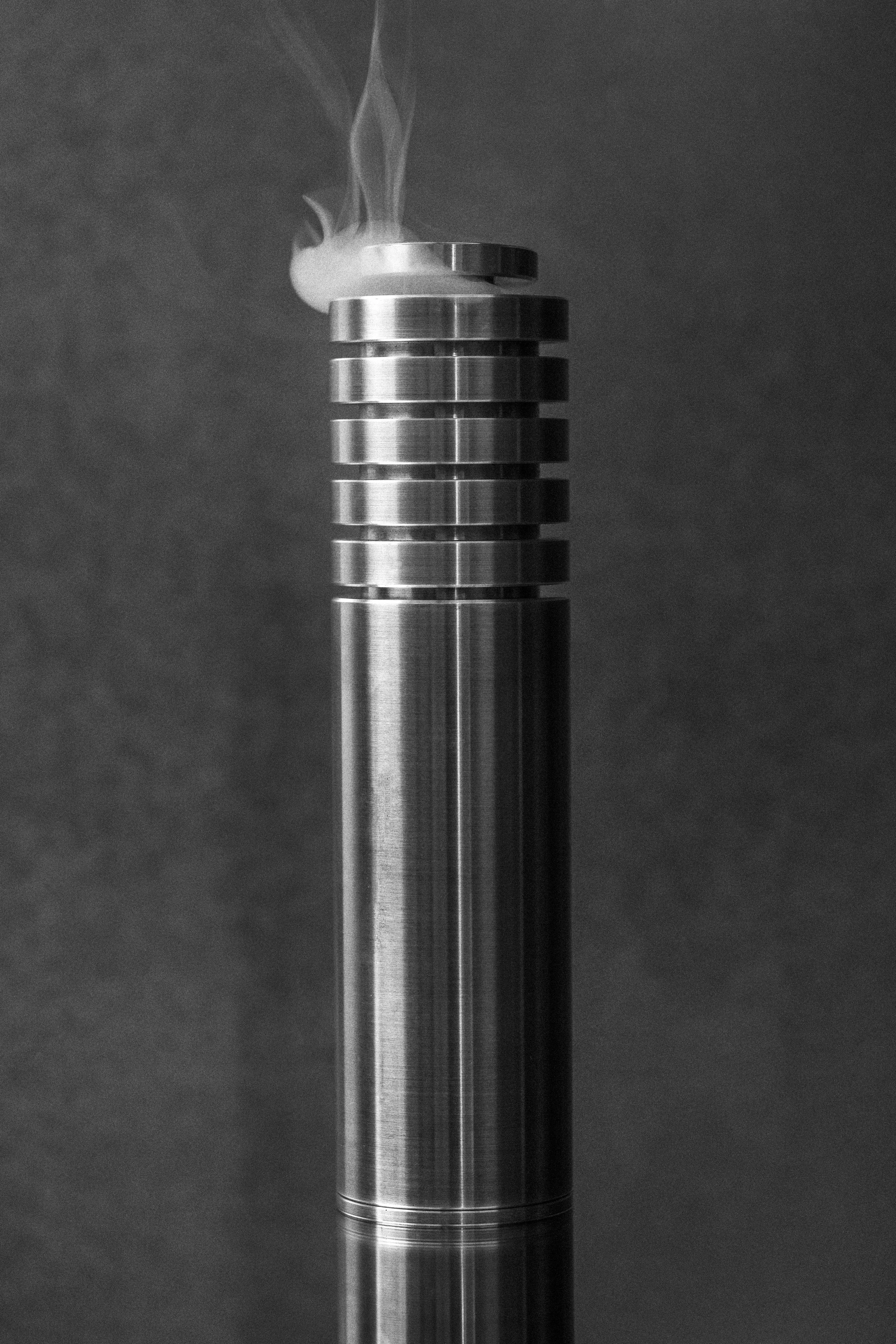 Inspired by the Metabolist movement, the piece is a modular copalera composed of four stackable elements, each crafted from solid aluminum using both conventional and CNC lathe techniques. It acts as a living object—one that breathes from within and transforms the space around it, guiding the user into different levels of contemplation through the ritual of burning copal.